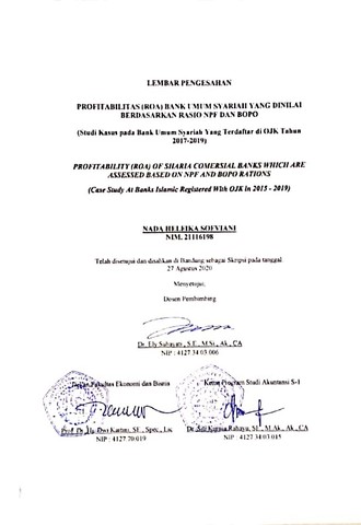 Sofviani, Nada Helfika (2020) Profitabilitas (ROA) Bank Umum Syariah Yang Dinilai Berdasarkan Rasio NPF dan BOPO (Studi Kasus Pada Bank Umum Syariah Yang Terdaftar Di OJK Tahun 2015 – 2019). Other thesis, Universitas Komputer Indonesia.