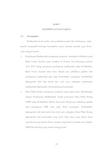 Dari hasil analisis menunjukan bahwa secara parsial pembiayaan mudharabah berpengaruh terhadap ROA, dan dana pihak ketiga berpengaruh terhadap ROA. Secara simultan bahwa pembiayaan mudharabah dan dana pihak ketiga secara simultan berpengaruh terhadap ROA,