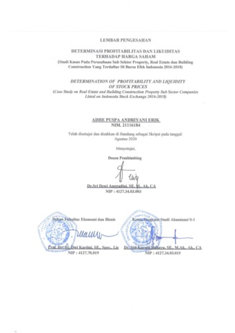 Erik, Adhe Puspa Andriyani (2020) Determinasi Profitabilitas Dan Likuiditas Terhadap Harga Saham (Studi Kasus Pada Perusahaan Sub Sektor Property, Real Estate Dan Building Construction Yang Terdaftar Di Bursa Efek Indonesia 2016-2018). Other thesis, Universitas Komputer Indonesia.