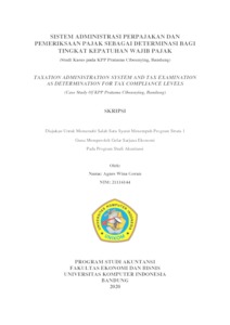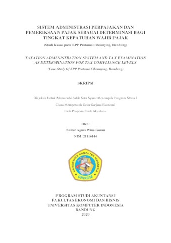 Goran, Agnes Wina (2020) Sistem Administrasi Perpajakan Dan Pemeriksaan Pajak Sebagai Determinasi Bagi Tingkat Kepatuhan Wajib Pajak (Studi Kasus Pada Kpp Pratama Cibeunying, Bandung). Other thesis, Universitas Komputer Indonesia.