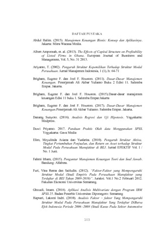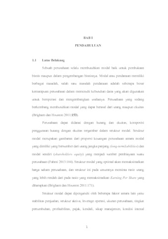 Hasil penelitian menunjukan bahwa (1) ukuran perusahaan berpengaruh signifikan terhadap struktur modal dengan hubungan yang positif, (2) profitabilitas berpengaruh signifikan terhadap struktur modal dengan hubungan yang negatif, (3) fixed asset ratio berpengaruh signifikan terhadap struktur modal dengan hubungan yang positif.