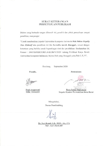 UNIKOM_DEPI ANGGRAENI_SURAT KETERANGAN PERSETUJUAN PUBLIKASI.pdf - Published Version
