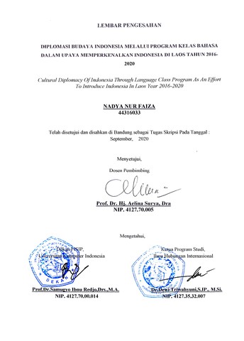 Faiza, Nadya Nur (2020) Diplomasi Budaya Indonesia Melalui Program Kelas Bahasa Dalam Upaya Memperkenalkan Indonesia Di Laos Tahun 2016-2020. Other thesis, Universitas Komputer Indonesia.