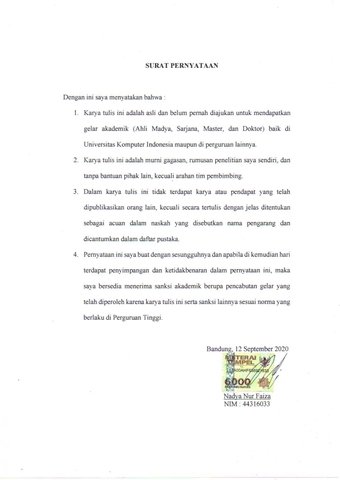 UNIKOM_Nadya Nur Faiza_Lembar Pernyataan.jpg - Published Version