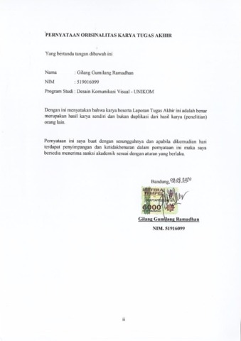 UNIKOM_Gilang Gumilang Ramadhan_3. Lembar Pernyataa Orisinalitas Karya Tugas Akhir.pdf - Published Version