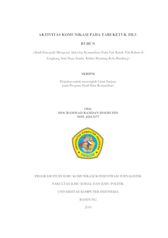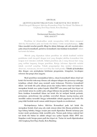 Hasil penelitian menunjukkan bahwa, situasi komunikatif dalam tari ketuk tilu bersifat terkonsep dimana ada tahapan-tahapan dan prosesnya sehingga terjadinya sebuah ritual yang menjadi suatu keharusan. Peristiwa komunikatif dalam tari ketuk tilu yaitu adanya pesan dan makna bahwa ritual tari ketuk tilu merupakan bentuk rasa syukur kepada Allah.SWT atas panen padi dan irigasi air serta bentuk tarian itu sendiri yaitu sebagai hiburan dan pemikat bagi lawan jenis. Serta tindakan komunikatif dalam tari ketuk tilu ini meliputi bentuk perintah, pernyataan, permohonan dan perilaku nonverbal dimana masing-masing poin memiliki makna tersendiri hingga terbentuklah sebuah pagelaran tari ketuk tilu yang tidak berubah meski zaman sudah bergeser kepada era modernisasi.Kesimpulannya bahwa Aktivitas Komunikasi pada tari ketuk tilu merupakan bentuk kegiatan yang ada sejak ratusan tahun lalu dimana pelafalan doa, lagu kidung bubuka, hingga sesajen pun masih digunakan. Bentuk tariannya pun teratur meski gerakannya tidak memiliki pola. Namun pada intinya maksud dari tari ketuk tilu buhun ini adalah sebagai rasa syukur kepada Allah. SWT atas limpahan rezeki berupa panen padi dan irigasi air. Tarian ini masih dipertahankan oleh Lingkung Seni Daya Sunda, Kota Bandung.Saran untuk Lingkung Seni Daya Sunda agar tidak tertutup terhadap generasi muda dalam melestarikan tarian ketuk tilu buhun ini, untuk masyarakat sunda agar tidak melupakan kebudayaan asli Indonesia yang ada. Untuk peneliti selanjutnya diharapkan mencari referensi yang lebih banyak lagi agar lebih relevan dengan hasil penelitian