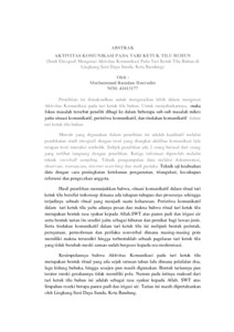 Penelitian ini dimaksudkan untuk menguraikan lebih dalam mengenai Aktivitas Komunikasi pada tari ketuk tilu buhun. Untuk menjabarkannya, maka fokus masalah tersebut peneliti dibagi ke dalam beberapa sub-sub masalah mikro yaitu situasi komunikatif, peristiwa komunikatif, dan tindakan komunikatif dalam tari ketuk tilu buhun. Metode yang digunakan dalam penelitian ini adalah kualitatif melalui pendekatan studi etnografi dengan teori yang diangkat aktifitas komunikasi lalu terapan teori interaksi simbolik. Subjek penelitian ada 2 orang berasal dari orang yang terlibat langsung dengan penelitian. Kedua informan diperoleh melalui teknik snowball sampling. Teknik pengumpulan data melalui dokumentasi, observasi, wawancara, internet searching dan studi pustaka.
