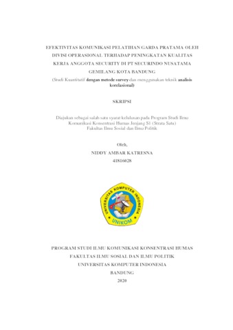 Ambar, Niddy (2020) Efektivitas Komunikasi Pelatihan Garda Pratama Oleh Divisi Operasional Terhadap Peningkatan Kualitas Kerja Anggota Security Di Pt Securindo Nusatama Gemilang Kota Bandung. Other thesis, Universitas Komputer Indonesia.