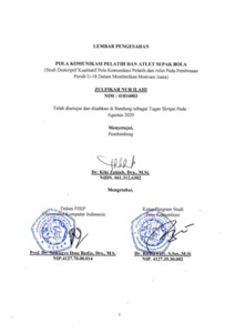 Ilahi, Zulfikar Nur (2020) Pola Komunikasi Pelatih Dan Atlet Sepak Bola. Other thesis, Universitas Komputer Indonesia.