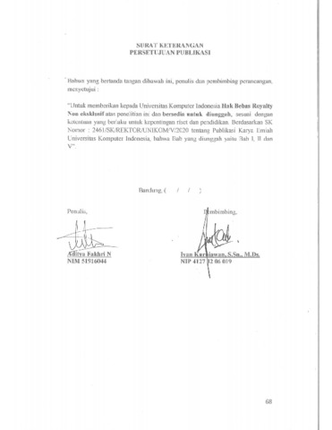 UNIKOM_Aditya Fakhri N_18. Surat Keterangan Persetujuan Publikasi.pdf - Published Version