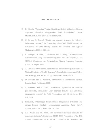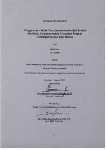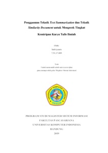 Indriyanto, Indriyanto (2020) Penggunaan Teknik Text Summarization dan Teknik Similarity Document untuk Mengecek Tingkat Kemiripan Karya Tulis Ilmiah. Other thesis, Universitas Komputer Indonesia.