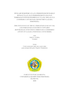Astria, Nikita (2020) Pengaruh Kepercayaan, Persepsi Kemudahan Penggunaan, Dan Persepsi Kenyamanan Terhadap Intensi Pembelian Ulang Melalui E-Commerce (Studi Pada Konsumen Lazada Indonesia). Other thesis, Univesitas Komputer Indonesia.