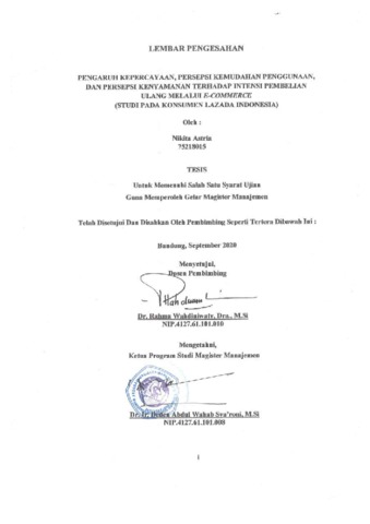 Penelitian ini bertujuan untuk mengetahui tanggapan konsumen terkait kepercayaan, kemudahan penggunaan, persepsi kenyamanan, ulang serta bagaimana pengaruhnya terhadap intensi pembelian ulang di Lazada Indonesia.