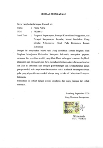 UNIKOM_NIKITA ASTRIA_LEMBAR PERNYATAAN.pdf - Published Version