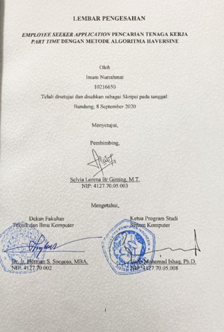 Nurrahmat, Imam (2020) Employee Seeker Application Pencarian Tenaga Kerja Part Time Dengan Metode Algoritma Haversine. Other thesis, Universitas Komputer Indonesia.