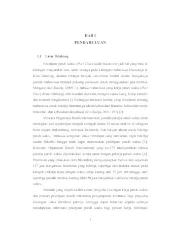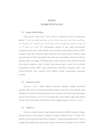Tren pekerjaan paruh waktu (part time) di kalangan mahasiswa dan masyarakat umum, serta kebutuhan akan karyawan paruh waktu (part time) di kalangan perusahaan semakin meningkat, namun tidak diimbangi oleh ketersediaan informasi terkait lowongan kerja yang tersedia maupun informasi karyawan yang bersedia untuk bekerja paruh waktu. Penulis membuat aplikasi yang dapat membantu Employee Seeker untuk mencari pekerja part time terdekat, serta membantu Employee untuk mencari pekerjaan part time dan melamar pekerjaan tersebut. Aplikasi ini berjalan pada perangkat dengan sistem operasi Android dan menggunakan bantuan algoritma Haversine untuk menghitung jarak antara Employee Seeker terhadap Employee dan menampilkan marker lokasi Employee terdekat pada peta digital berdasarkan jarak radius yang diatur oleh pengguna. Fungsi utama aplikasi ini adalah untuk menampilkan informasi keberadaan pekerja part time terdekat kepada Employee Seeker dan menampilkan informasi lowongan pekerjaan part time kepada Employee. Hasil pengujian menghasilkan indeks skor rata-rata sebanyak 82% dan masuk dalam kategori Sangat Setuju/ Suka, sehingga pengguna Employee Seeker dan Employee menggangap bahwa aplikasi telah berjalan dengan baik dan mampu menjalankan fungsi utama berupa menampilkan pekerja part time terdekat dan menampilkan informasi pekerjaan part time.