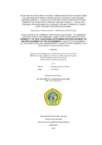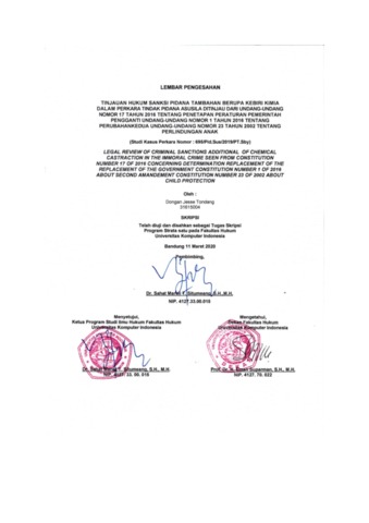 Tondang, Dongan Jesse (2020) Tinjauan Hukum Sanksi Pidana Tambahan Berupa Kebiri Kimia Dalam Perkara Tindak Pidana Asusila Ditinjau Dari Undang-Undang Nomor 17 Tahun 2016 Tentang Penetapan Peraturan Pemerintah Pengganti Undang-Undang Nomor 1 Tahun 2016 Tentang Perubahan Kedua Undang-Undang Nomor 23 Tahun 2002 Tentang Perlindungan Anak. Other thesis, Universitas Komputer Indonesia.