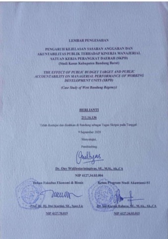 Herlianti, Herlianti (2020) Pengaruh Kejelasan Sasaran Anggaran Dan Akuntabilitas Publik Terhadap Kinerja Manajerial Satuan Kerja Perangkat Daerah (SKPD) (Studi Kasus Kabupaten Bandung Barat). Other thesis, Universitas Komputer Indonesia.