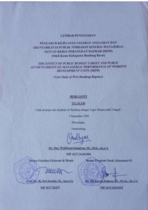 | Uncontrolled Keywords: | Kejelasan Sasaran Anggaran, Akuntabilitas Publik, Kinerja Manajerial SKPD. |