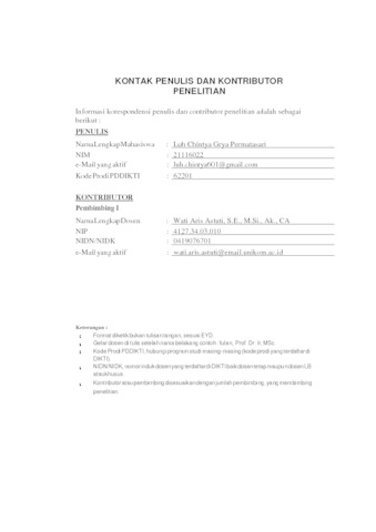UNIKOM_LUH CHINTYA GRYA PERMATASARI_KONTAK PENULIS DAN KONTRIBUTOR PENELITIAN.pdf - Published Version