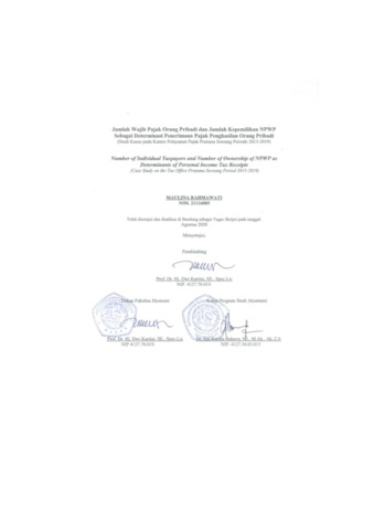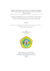 | Uncontrolled Keywords: | Wajib Pajak, Kepemilikan NPWP dan Penerimaan Pajak penghasilan Orang Pribadi. |