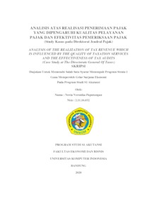 Paputungan, Novia Veronika (2020) Analisis Atas Realisasi Penerimaan Pajak Yang Dipengaruhi Kualitas Pelayanan Pajak Dan Efektivitas Pemeriksaan Pajak (Study Kasus Pada Direktorat Jendral Pajak). Other thesis, Universitas Komputer Indonesia.