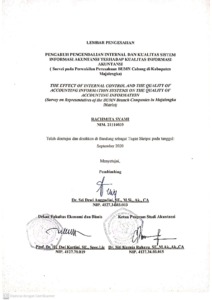 Syami, Rachmita (2020) Pengaruh Pengendalian Internal Dan Kualitas Sistem Informasi Akuntansi Terhadap Kualitas Informasi Akuntansi (Survei Pada Perwakilan Perusahaan Bumn Cabang Di Kabupaten Majalengka). Other thesis, Universitas Komputer Indonesia.