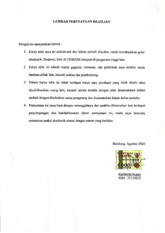 UNIKOM_RACHMITA SYAMI_LEMBAR PERNYATAAN KEASLIAN.pdf - Published Version