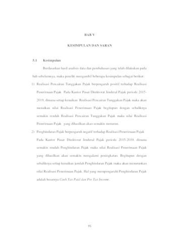 Hasil dari penelitian ini menunjukan bahwa realisasi pencairan tunggakan pajak pada tingkat pengaruh yang sangat kuat sedangkan penghindaran pajak menunjukan pengaruh pada tingkat kuat terhadap realisasi penerimaan pajak pada Kantor Pusat Direktorat Jenderal Pajak periode 2015-2019. Hasil penelitian ini juga menunjukan bahwa realisasi pencairan tunggakan pajak berpengaruh signifikan positif yang artinya apabila realisasi pencairan tunggakan pajak meningkat maka realisasi penerimaan pajak pun akan meningkat sedangkan penghindaran pajak berpengaruh signifikan negatif terhadap realisasi penerimaan pajak yang artinya apabila penghindaran pajak meningkat maka realisasi penerimaan pajak akan menurun.