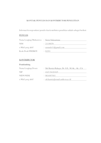 UNIKOM_SEREN SULASANTANA_KONTAK PENULIS DAN KONTRIBUTOR PENELITIAN.pdf - Published Version