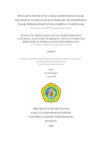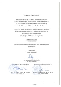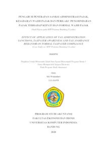 Wulandari, Siti (2020) Pengaruh Penerapan Sanksi Administrasi Pajak, Kesadaran Wajib Pajak Dan Perilaku Penghindaran Pajak Terhadap Kepatuhan Formal Wajib Pajak. Other thesis, Universitas Komputer Indonesia.