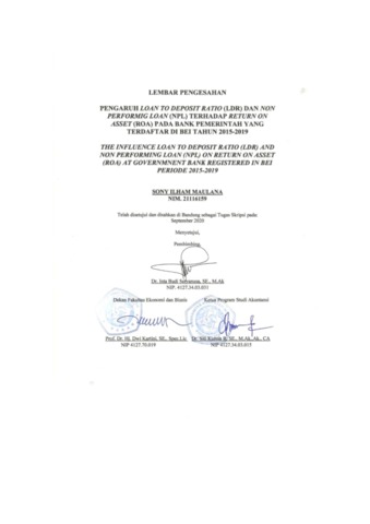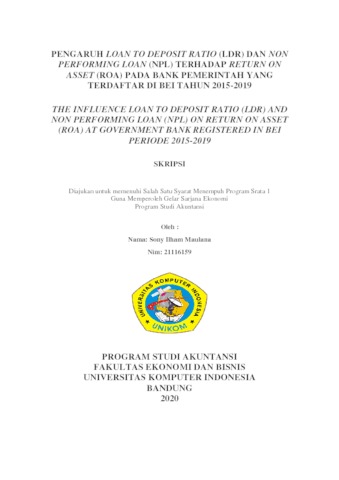 Maulana, Sony Ilham (2020) Pengaruh Loan To Deposit Ratio (Ldr) Dan Non Performing Loan (Npl) Terhadap Return On Asset (Roa) Pada Bank Pemerintah Yang Terdaftar Di Bei Tahun 2015-2019. Other thesis, Universitas Komputer Indonesia.