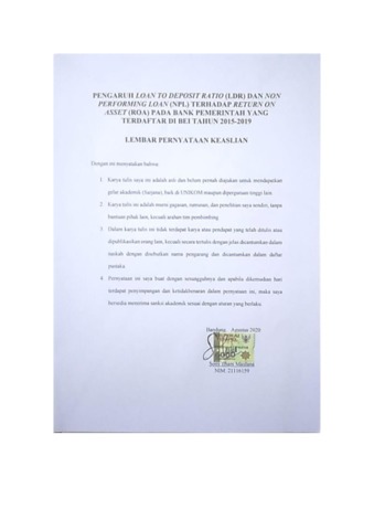 | Uncontrolled Keywords: | Loan To Deposit Ratio, Non Performing Loan , dan Return On Asset |