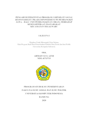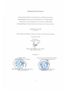 Azmi, Ahmad Ulul (2020) Pengaruh Efektivitas Program Corporate Social Responsibility Pilar Empowerment Pt Pembangkit Jawa – Bali Unit Pembangkitan Cirata Terhadap Kesejahteraan Masyarakat Kecamatan Tegalwaru. Other thesis, Universitas Komputer Indonesia.