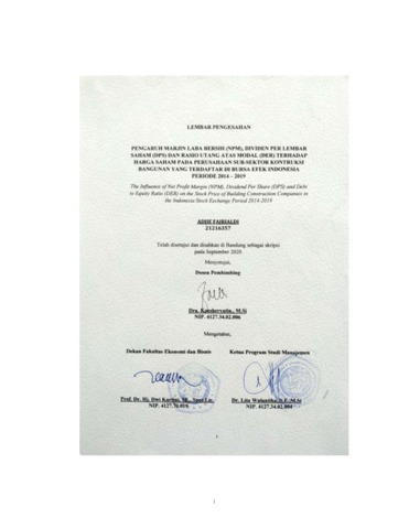 Fajrialdi, Adjie (2020) Pengaruh Marjin Laba Bersih (NPM), Dividen Per Lembar Saham (DPS) dan Rasio Utang atas Modal (DER) Terhadap Harga Saham Perusahaan Sub-Sektor Kontruksi Bangunan yang terdaftar di Bursa Efek Indonesia Periode 2014-2019. Other thesis, Universitas Komputer Indonesia.