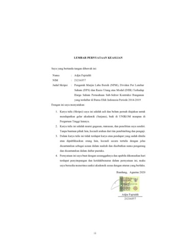 UNIKOM_ADJIE FAJRIALDI_LEMBAR PERNYATAAN KEASLIAN.pdf - Published Version