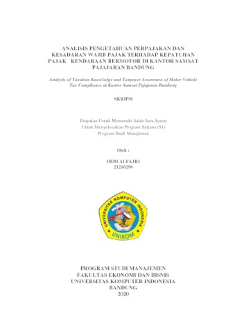 Alfajri, Debi (2020) Analisis Pengetahuan Perpajakan Dan Kesadaran Wajib Pajak Terhadap Kepatuhan Pajak Kendaraan Bermotor Di Kantor Samsat Pajajaran Bandung. Other thesis, Universitas Komputer Indonesia.