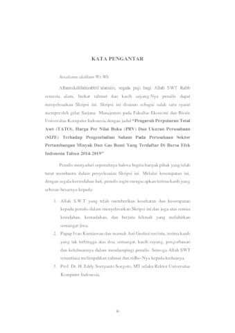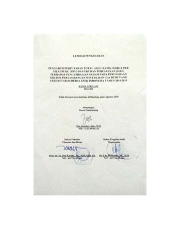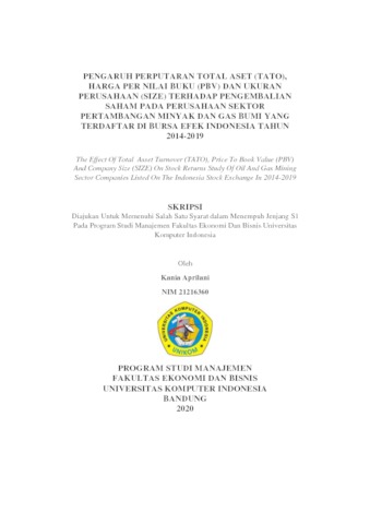Aprilani, Kania (2020) Pengaruh Perputaran Total Aset (Tato), Harga Per Nilai Buku (Pbv) Dan Ukuran Perusahaan (Size) Terhadap Pengembalian Saham Pada Perusahaan Sektor Pertambangan Minyak Dan Gas Bumi Yang Terdaftar Di Bursa Efek Indonesia Tahun 2014-2019. Other thesis, Univesitas Komputer Indonesia.
