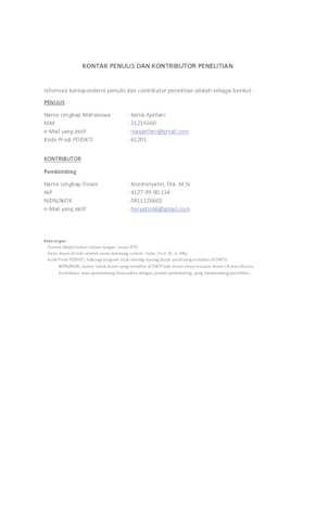 UNIKOM_Kania Aprilani_Kontak Penulis dan Kontributor.pdf - Published Version