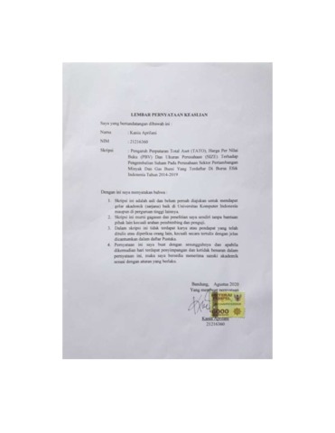 UNIKOM_Kania Aprilani_Lembar Pernyataan Keaslian.pdf - Published Version