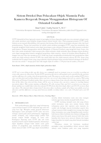 Yakin, Ilmal (2018) Sistem Deteksi Dan Pelacakan Objek Manusia Pada Kamera Bergerak Menggunakan Metode Histogram Of Oriented Gradient. Other thesis, Universitas Komputer Indonesia.