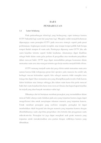 CCTV bukanlah hal baru lagi pada zaman ini perangkat ini biasa digunakan pada area-area strategis sebagai suatu alat untuk merekam suatu kejadian dengan kamera dalam bentuk video. Pada pengoperasiannya CCTV masih bekerja secara manual dikendalikan oleh operator dan kurang efisien dalam menyimpan rekaman video dari hasil pemantauannya. Tujuan dari penelitian ini adalah untuk membuat perangkat CCTV yang bisa mendeteksi dan bergerak mengikuti objek manusia serta dapat menyimpan suatu rekaman bilamana ada objek manusia terdeteksi pada kamera. Dengan menggunakan metode Histogram of Oriented Gradient yang mengolah frame-frame citra dari video untuk mendeteksi objek manusia jika objek terdeteksi objek terdeteksi akan disimpan dalam direktori serta dapat menggerakan kamera mengikuti pergerakan objek manusia. sistem ini berjalan dalam Raspberry Pi dengan rata-rata 8 fps dan memproses 0,12 detik tiap frame menghasilkan keberhasilan dari pendeteksian objek untuk satu objek manusia sebesar 97,30% dan untuk lebih dari satu objek manusia sebesar 45,12%. frame yang terdeteksi dari 8 frame yang yang terdeteksi objek kedelapan frame tersebut berhasil disimpan di direktori dan rata-rata selisih +- berapa pixel dari titik tengah objek di sumbu x 7,54 pixel dan di sumbu y 0,6 pixel.