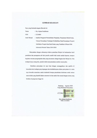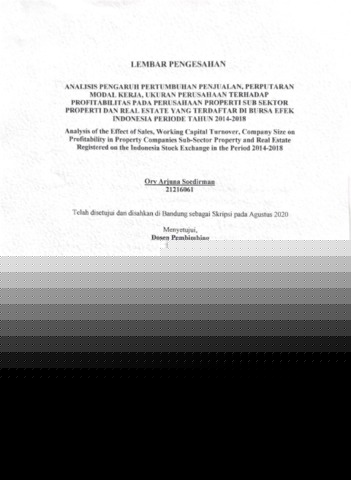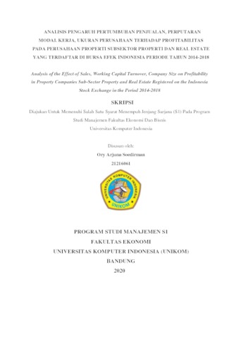 Soedirman, Ory Arjuna (2020) Pengaruh Pertumbuhan Penjualan, Perputaran Modal Kerja, Ukuran Perusahaan Terhadap Profitabilitas Pada Perusahaan Properti Subsektor Properti dan Real Estate yang Terdaftar di Bursa Efek Indonesia Periode 2014-2018. Other thesis, Univesitas Komputer Indonesia.