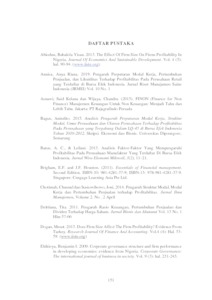 Hasil penelitian ini menunjukan bahwa, (1) Pertumbuhan Penjualan berpengaruh positif signifikan terhadap profitabilitas (2) Perputaran modal kerja berpengaruh positif signifikan terhadap profitabiltias (3) Ukuran perusahaan berpengaruh negatif signifikan terhadap Profitabilitas (4) Secara bersamaan pertumbuhan penjualan, perputaran modal kerja, dan ukuran perusahaan berpengaruh signifikan terhadap profitabilitas