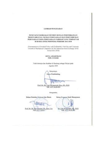 Amarthani, Sinta (2020) Penetapan Kebijakan Dividen Dengan Pertimbangan Profitabilitas, Ukuran Perusahaan Dan Pertumbuhan Perusahaan Pada Perusahaan Farmasi Yang Terdaftar Di Bursa Efek Indonesia Priode 2013-2018. Other thesis, Univesitas Komputer Indonesia.