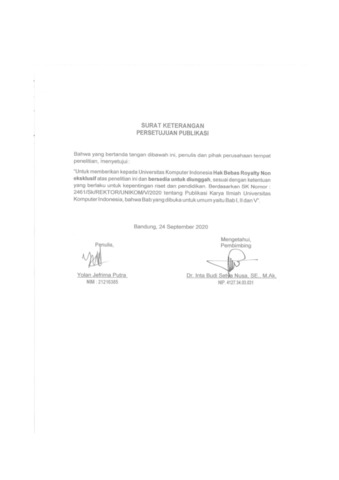 UNIKOM_Yolan Jefrima Putra_Lembar Persetujuan Publikasi.pdf - Published Version
