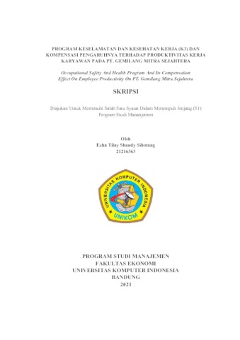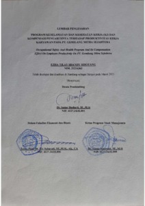 Sihotang, Ezha Tilay Shnady (2020) Program Keselamatan Dan Kesehatan (K3) Dan Kompensasi Pengaruhnya Terhadap Produktivitas Kerja Karyawan Pada Pt. Gemilang Mitra Sejahtera. Other thesis, Universitas Komputer Indonesia.