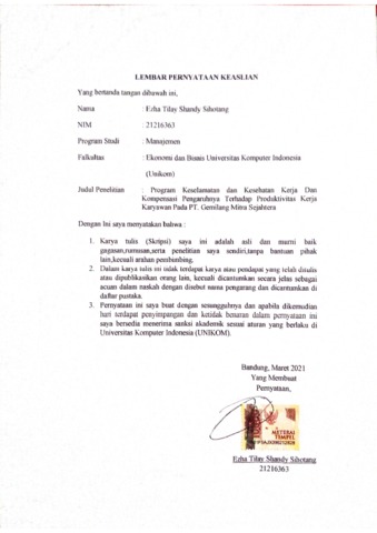 3. UNIKOM_EZHA TILAY SHANDY SIHOTANG_LEMBAR PERNYATAAN KEASLIAN.pdf - Published Version