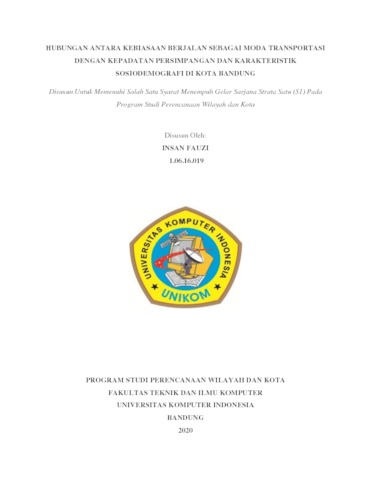 Fauzi, Insan (2020) Hubungan Antara Kebiasaan Berjalan Sebagai Moda Transportasi Dengan Kepadatan Persimpangan Dan Karakteristik Sosiodemografi Di Kota Bandung. Other thesis, Univesitas Komputer Indonesia.
