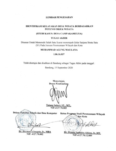 Maulana, Muhammad Agung (2020) Identifikasi Kelayakan Desa Wisata Berdasarkan Potensi Objek Wisata. Other thesis, Univesitas Komputer Indonesia.